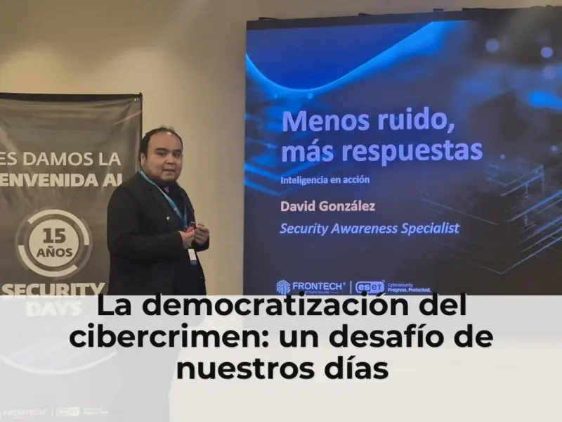 En la décimo quinta edición de los ESET Security Days celebrada en Bogotá, el investigador de seguridad de ESET para Latinoamérica, David González, resaltó cómo la inteligencia artificial generativa está democratizando el cibercrimen al eliminar las barreras técnicas que antes limitaban a los atacantes.